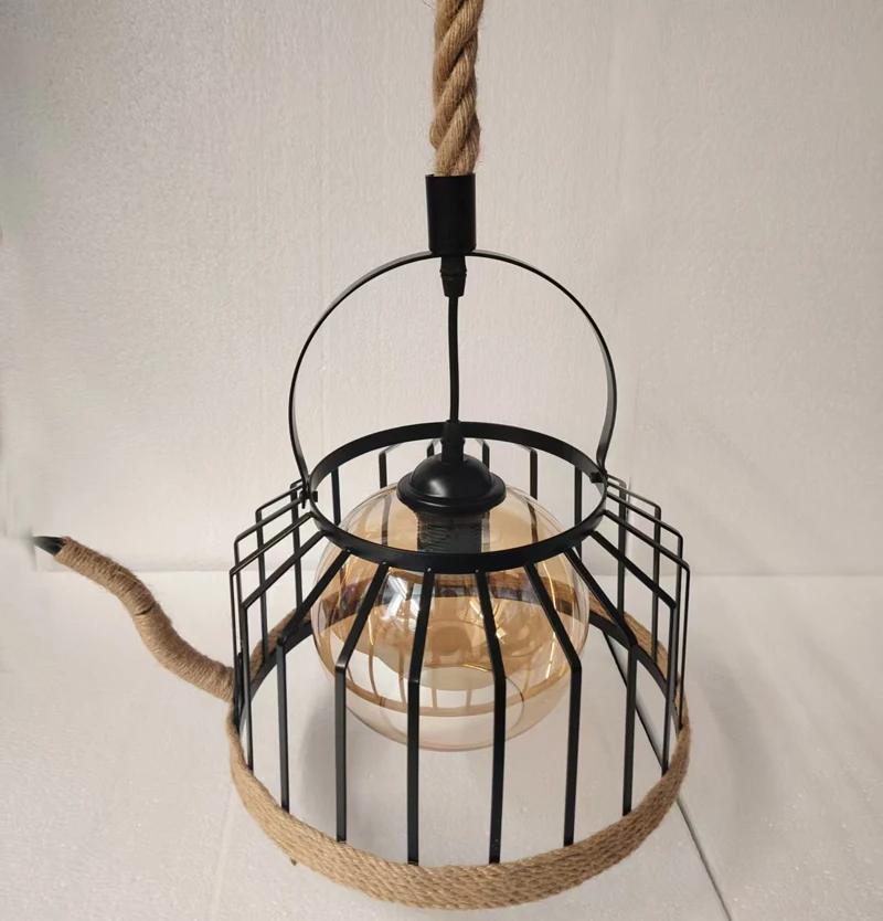 Retro Hemp Rope & Metal Pendant Lamp – Industrial Hanging Light Ghana